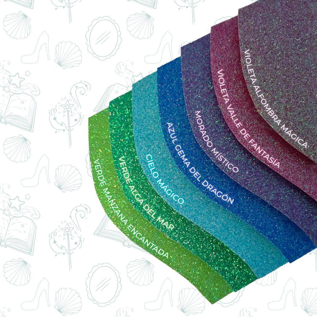 Sumergite en un mundo de cuento con Cuentilina, nuestro papel con glitter real que brilla con una intensidad única. A diferencia de otros papeles con glitter, su resplandor es más profundo y permite combinaciones de destellos mágicos.