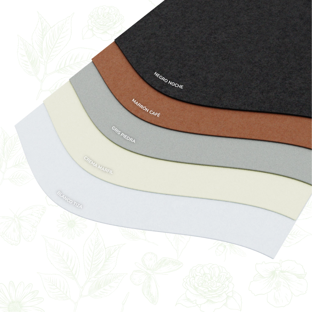 Papeles teñidos en su pasta, lo que significa que el color se integra completamente en la fibra, asegurando uniformidad en bordes, cantos y esquinas, brindando cortes y plegados perfectos, además de una mayor durabilidad y resistencia. Con tonos neutros como blanco, marron, gris y negro, son ideales para proyectos versátiles y sutiles.